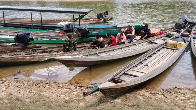 Tembus Isolasi Geografis, Kodim 0313/KPR Distribusikan Bahan Material Jembatan Desa Kota Lama via Jalur Air