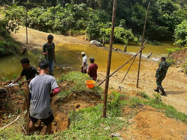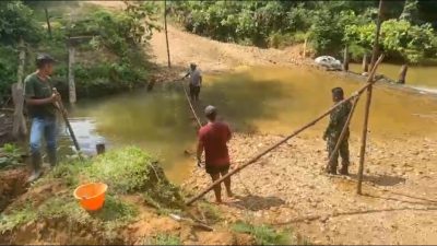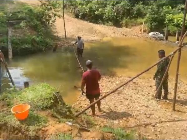 Tantang Medan Sulit, Tim Pembangunan Jembatan Bahu-Membahu Langsir Sling Baja