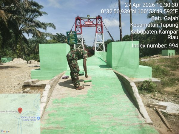 KAMPAR KIRI HULU – Pembangunan infrastruktur strategis Jembatan Gantung Ramco di Desa ...