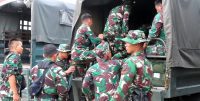 Pasukan satgas seterusnya melanjutkan perjalanan ke lokasi TMMD di kelurahan Teluk Meranti dengan menggunakan truk truk yang sudah di siapkan sebelumnya