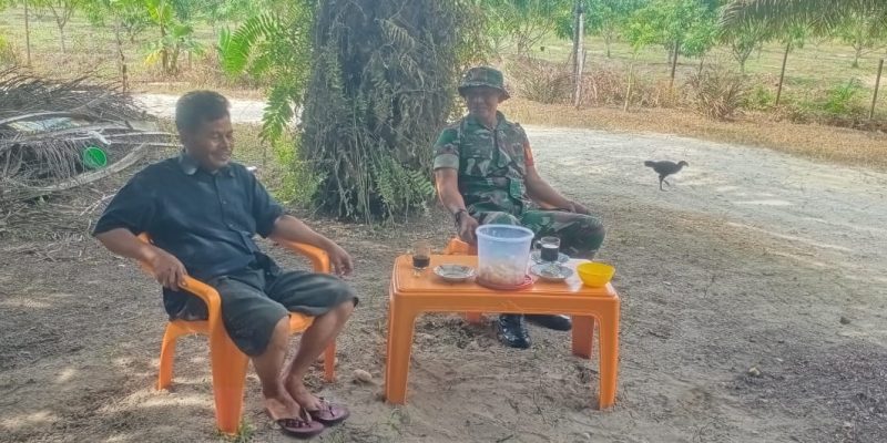 Rumbio Jaya – Dalam upaya meningkatkan kesadaran dan keselamatan kerja di kalangan petani kelapa sawit, Bintara Pembina Desa (Babinsa) dari Koramil 07/Kampar Kodim 0313/KPR melaksanakan komunikasi sosial (komsos) dengan para petani di wilayah binaannya. Kegiatan ini bertujuan memberikan pemahaman tentang pentingnya keselamatan kerja dalam setiap aktivitas kebun kelapa sawit di Desa Teratak Kecamatan Rumbio Jaya Kabupaten Kampar. pada