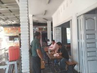 Anggota Koramil 14/kepenuhan Komsos Bersama Warga Di Tempat Keramaian Di Wilayah.