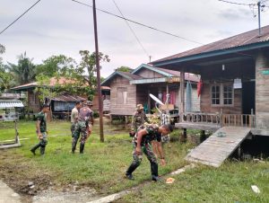 Teluk Meranti – Program TNI Manunggal Membangun Desa (TMMD) Ke-115 tahun 2022 tampak begitu kompak, hal ini terlihat dari semangat kekeluargaan antara anggota Satgas TMMD Kodim 0313/KPR bersama dengan orang tua angkat di GG. Rambutan RT. 05 RW. 08 Kelurahan Teluk Meranti Kec. Teluk Meranti Kab. Pelalawan. Jumat 14/10/2022.