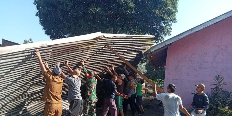 ‘Rumah warga yang terdampak angin puting beliung satu unit. Rumah tersebut terbuat dari papan yang berukuran 7 X 8 meter, jelas Bintara Pembina Desa (Babinsa) Koramil 10 Kunto Darussalam Kodim 0313/KPR Koptu Jantri Istani, Rabu (26/8/2025).