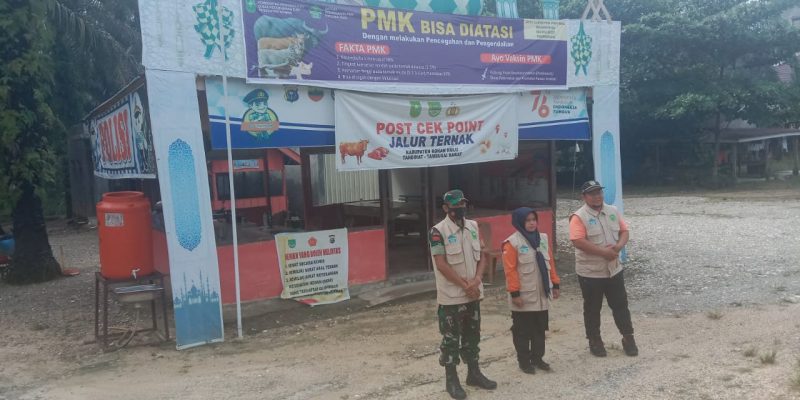 ROKAN Hulu Upaya untuk mengantisipasi munculnya wabah penyakit hewan yaitu penyakit mulut dan kuku (PMK) jajaran Kodim 0313/Kpr melalui Koramil 11/Tambusai bersama Polsek Tambusai dan Dinas terkait melaksanakan Penyekatan Lalu Lintas Hewan Ternak di pos pantau Desa Sei Kumango Kecamatan Tambusai Kabupaten Rokan Hulu Sabtu (29/10/2022).