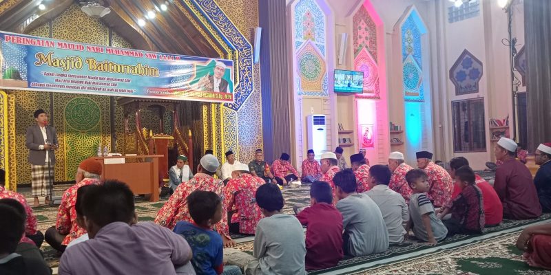 Pangkalan Kerinci – Babinsa Koramil 09/Langgam Kodim 0313/KPR, Serda Imron menghadiri acara peringatan Maulid Nabi Muhammad SAW di Masjid Baiturrahman Kelurahan Kerinci Kota Kecamatan Pangkalan Kerinci Kabupaten Pelalawan,Rabu Malam (05/10/2022).