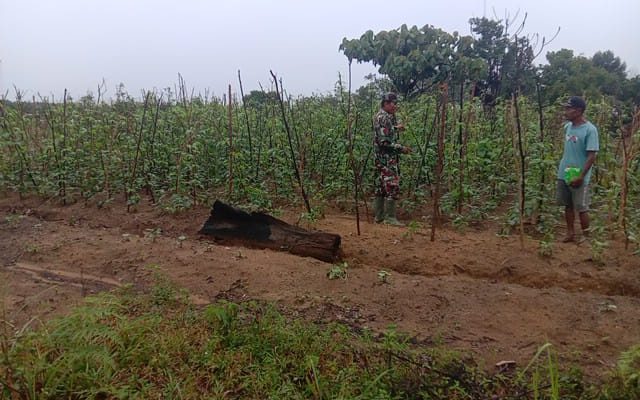 Bintara Pembina Desa (Babinsa) Koramil 09/Langgam Kodim 0313/Kpr Serka Yondri bersama masyarakat melaksanakan Komsos pendampingan pada tanaman kacang panjang di Desa Segati Kecamatan Pangkalan kerinci Kabupaten Pelalawan Riau,Rabu (04/06/2025).