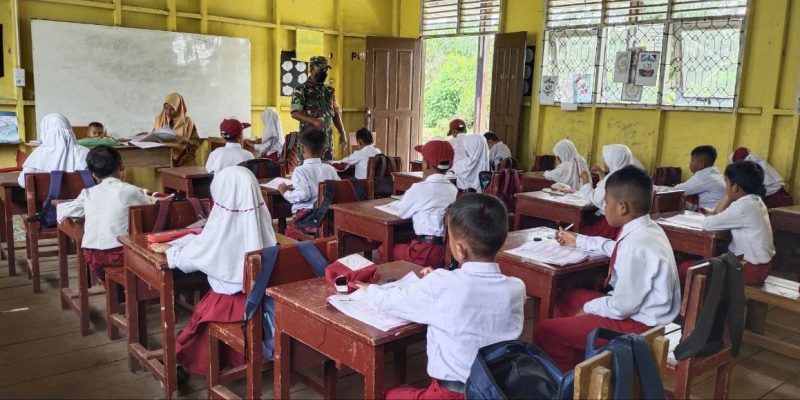 Pelalawan – Babinsa Koramil 15/KK Serda Ucok Parluhutan memberi Materi Wawasan Kebangsaan (Wasbang) di SDN 1 Jalan Rambutan No. 11 Kel. Teluk Meranti Kec. Teluk Meranti, Kab. Pelalawan, senin (10/10/2022).