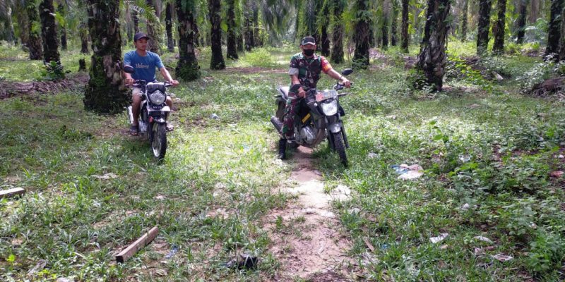 Babinsa Koramil 11/ Tambusai Kodim 0313 /KPR Sertu Abinuh Daulay bersama dengan masyarakat peduli api (MPA) melaksanakan Patroli pencegahan Karhutla di wilayah Desa Mahato Kecamatan Tambusai Utara Kabupaten Rokan Hulu, Senin (03/10/2022).