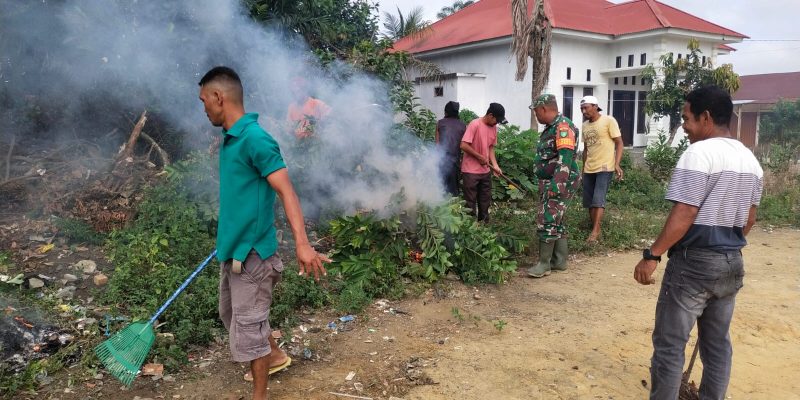 Pelalawan – Dalam upaya menciptakan wilayah bebas sampah dan mempererat sinergitas antara TNI dan masyarakat, Babinsa Koramil 03/Bunut Kodim 0313/KPR, Sertu Rizal Hadri melaksanakan kegiatan gotong royong bersama warga binaan di Desa Terbangiang, Kecamatan Bandar Petalangan, Kabupaten Pelalawan, Minggu (12/04/2026).