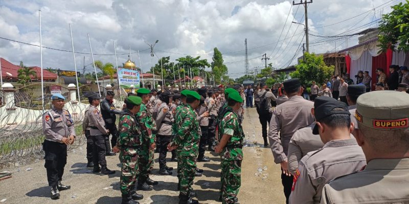 Pelalawan – Personel Babinsa Koramil 03/Bunut Kodim 0313/KPR dipimpin Pabung Pelalawan Mayor Inf Lilik Hariono turut ambil bagian dalam kegiatan Simulasi Sistem Pengamanan Markas Komando (Sispam Mako) dan Penanganan Unjuk Rasa yang diselenggarakan oleh Polres Pelalawan, di halaman Mapolres Pelalawan, Jalan Arya Guna, Pangkalan Kerinci Barat, Kabupaten Pelalawan, Riau, Selasa (14-10-2025)