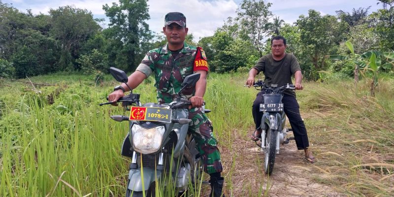 Kali ini Babinsa Koramil 05/KK Serda Iskandar menyusuri wilayah hutan dan perkebunan warga guna untuk memantau perkembangan wilayah terutama titik-titik rawan karhutla.