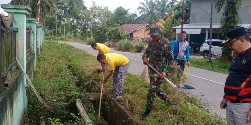 Rumbio Jaya – Koptu Wahyu Wibowo, Babinsa Koramil 07/Kampar, Kodim 0313/KPR, melaksanakan kegiatan gotong royong bersama masyarakat Desa Teratak, Kecamatan Rumbio Jaya, Kabupaten Kampar, pada Rabu (27/08/2025). Kegiatan ini difokuskan pada pembersihan parit yang kotor akibat penumpukan sampah.