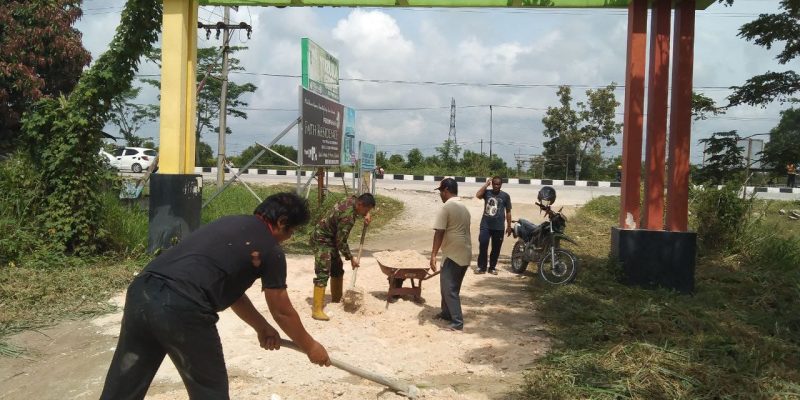 Tambang – Babinsa Koramil 07/Kampar Kodim 0313/KPR Serda Jemmi bersama warga masyarakat melaksanakan kegiatan kerja bakti gotong-royong membersihkan jalan dan menutup lubang-lubang di jalan umum dengan menggunakan batu koral. Kegiatan ini berlangsung di jalan Desa Rimbo Panjang, Kecamatan Tambang, Kabupaten Kampar, pada Jumat,(06-06-2025).
