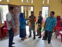 Sertu Azwir dalam melaksanakan tugas sebagai babinsa ikut serta pada kegiatan pembagian santunan beras kepada anak yatim piatu yang ada di desa Bukit Kratai.