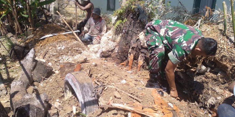 Kegiatan ini melibatkan seluruh komponen masyarakat, mulai dari perangkat desa, tokoh masyarakat, hingga warga sekitar. Kami berharap, adanya kegiatan ini dapat meringankan beban Bapak Dani dan keluarganya dalam proses renovasi rumah,” seru Serka Jumiono.