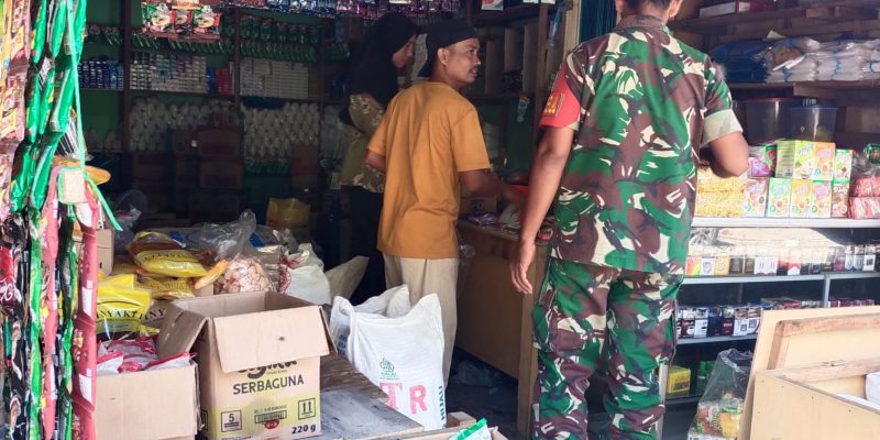 Rokan Hulu (Rohul) – Babinsa Koramil 08/Tandun, Kodim 0313/KPR, Koptu Sabdo, melaksanakan kegiatan pemantauan dan pengecekan harga kebutuhan pokok (sembako) di wilayah binaannya, Kecamatan Tandun, Kabupaten Rokan Hulu.