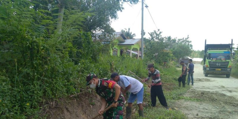 Pangkalan Kerinci – Dalam rangka membangun kebersamaan bersama masyarakat di wilayah binaanya, Babinsa Koramil 09/ Langgam Kodim 0313/KPR Sertu Hermanto ikut bergotong royong bersama warga Desa Simpang beringin membersihkan parit dan penimbunan jalan umum desa Simpang beringin. Desa Simpang beringin jln Kas Desa RT/RW/07/03 Kecamatan Bandar Seikijang,Kabupaten Pelalawan,Sabtu (15/10/2022).