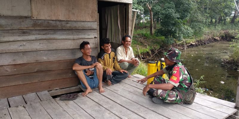 Pangkalan Kerinci – Babinsa Koramil 09/Langgam Kodim 0313/KPR Serda Adi Akmal melaksanakan komsos di rumah warga binaan, Kelurahan Kerinci Barat Kecamatan Pangkalan Kerinci Kabupaten Pelalawan, Senin (03/10/2022).