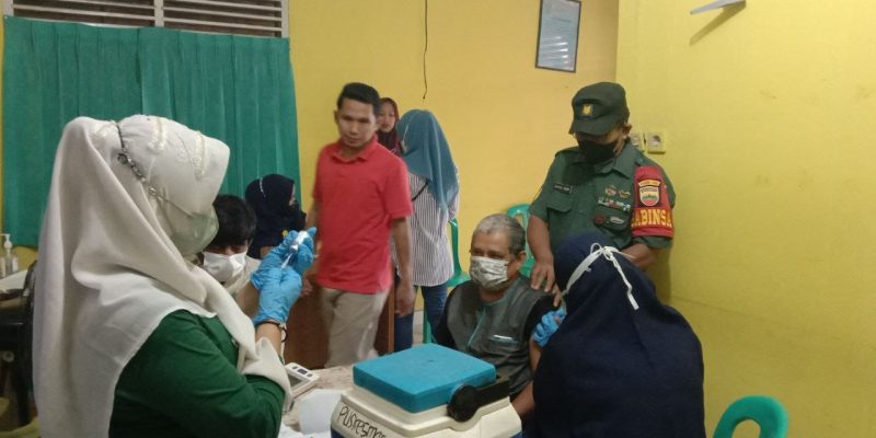 Kegiatan Serbuan Vaksinasi dan percepatan penanganan pandemi Covid-19 seperti yang dilakukan Babinsa Serma Sahuli Abni melaksanakan pendampingan kepada warganya mengikuti vaksinasi Covid-19, yang dilaksanakan di Puskesmas Berseri Kerinci 1 Kecamatan Pangkalan Kerinci Kabupaten Pelalawan.