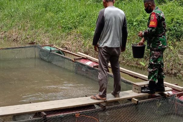 Batu Bersurat- Babinsa Koramil 12/XIII Koto Kampar Kodim 0313/Kampar, Serda Hartadi Widodo melakukan komunikasi sosial (Komsos) dengan salah satu peternak pembibitan Ikan Mujair di Rt/Rw 02/04 Desa Binamang, Kecamatan XIII Koto Kampar, Kabupaten Kampar, Selasa (4/10/2022).