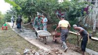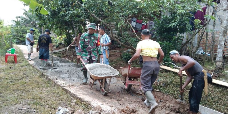 Babinsa Sertu Aan dengan warga melaksanakan aksi gotong-royong untuk menimbun jalan yang berlubang dan becek  jika hujan, dan juga agar warga masyarakat selalu menjaga kebersihan agar tidaknya mudah terserang penyakit.