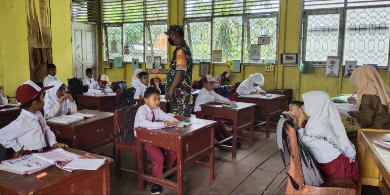 Pelalawan – Babinsa Koramil 15/KK Serda Ucok Parluhutan memberi Materi Wawasan Kebangsaan (Wasbang) di SDN 1 Jalan Rambutan No. 11 Kel. Teluk Meranti Kec. Teluk Meranti, Kab. Pelalawan, senin (17/10/2022).