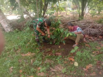 Adapun jenis sayuran yang di tanam di areal lahan tersebut antara lain tanaman mentimun, kacang panjang dan cabe. menurut bapak hadi selaku pemilik lahan merasa senang dengan kehadiran Babinsa tersebut, Babinsa tidak segan-segan terjun langsung membantu mencangkul lahan, memupuk sampai nantinya dapat di panen.