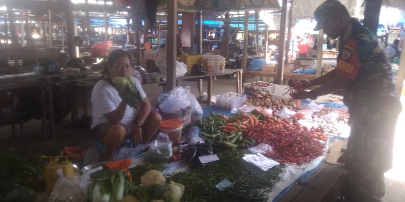 Untuk mengatasi hal tersebut, Babinsa Koramil 05/KK Serda Hendrik Jawe melakukan monitoring kebutuhan bahan pokok guna untuk mengetahui harga-harga yang beredar di pasaran.