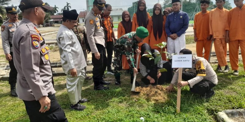 Pangkalan Kuras, Dalam rangka memperingati Hari Pohon Nasional, Babinsa Sertu Ilham Khairi Babinsa Koramil 04/Pkl.Kuras Kab.Pelalawan bersama jajaran Polsek dan pihak Kecamatan melaksanakan kegiatan penanaman pohon serentak di wilayah binaan. Kel.Sorek Satu Kec.Pangkalan Kuras Kab.Pelalawan, Jumat,(21/11/2025).
