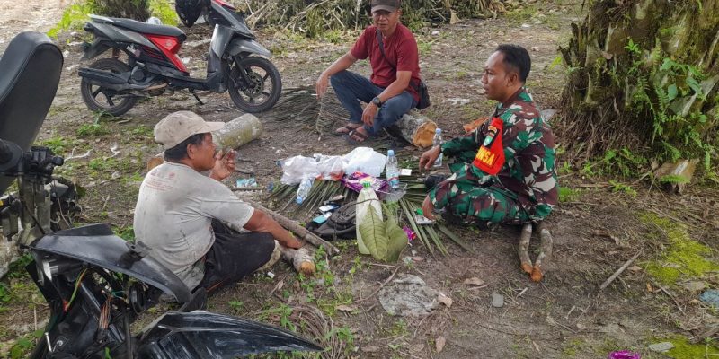 Pangkalan Kuras – Babinsa Koramil 04/Pkl.Kuras, Kodim 0313/Kpr Sertu Ilham Khairi, memanfaatkan jam istirahat untuk melaksanakan komunikasi sosial (Komsos) bersama para petani sawit di Desa binaannya. Kel.Sorek Satu Kec.Pangkalan Kuras Kab.
