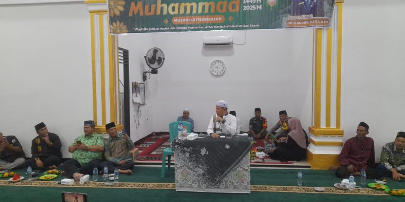 Pangkalan Kuras – Babinsa Koramil 04/Pangkalan Kuras, Sertu Ilham Khairi, menghadiri undangan perayaan Maulid Nabi Muhammad SAW yang digelar di Mushollah  Fisabilillah Kp.Melati Kel.Sorek Satu Kec.Pkl.Kuras Kab.Pelalawan Rabu, (10/09/2025).