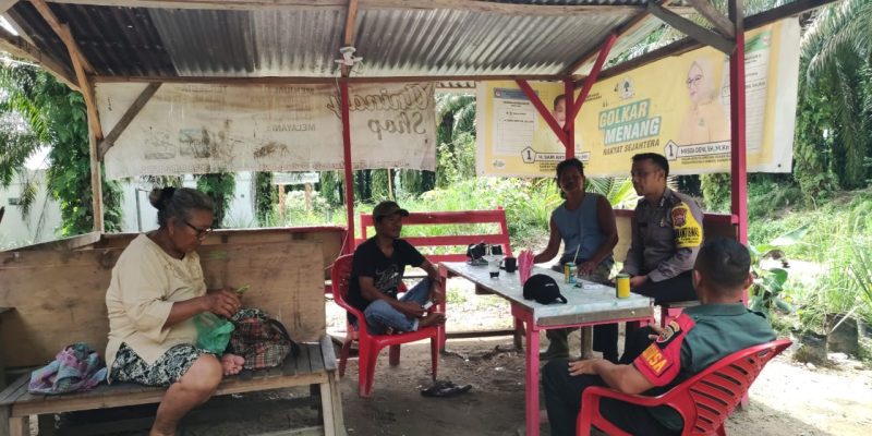 Babinsa Koramil 11/Tambusai Kodim 0313/Kpr Serda Syahrizal Nasution bersama dengan Bhabinkamtibmas yang terlihat sedang berkomunikasi dengan masyarakat di Desa Tambusai Barat Kecamatan Tambusai Kabupaten Rokan Hulu. Senin (02/06/2025).