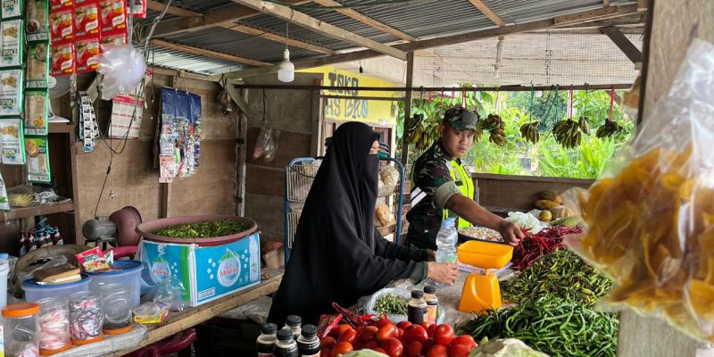 Babinsa Koramil 14/kpn Jajaran Kodim 0313/kpr Sertu M.Rahmad turun ke warung – warung Untuk melaksnakan komsos sekaligus mengecek harga bahan pokok di warung, di kepenuhan Tengah, kec kepenuhan kab Rokan Hulu Sabtu (19/7/2025)