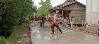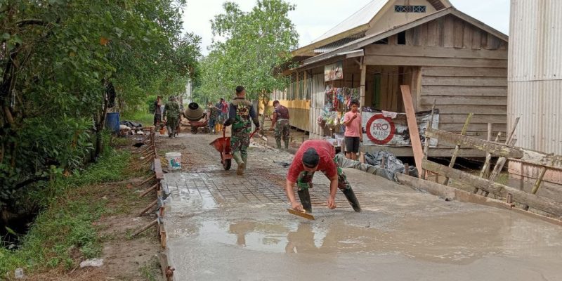 Teluk Meranti – Salah satu sasaran fisik TNI Manunggal Membangun Desa (TMMD) ke 115 Kodim 0313/KPR yakni semenisasi jalan terus di kebut pengerjaannya.