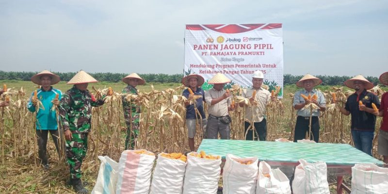 Tapung,- Upaya mendukung Program Nasional Ketahanan Pangan yang dicanangkan Pemerintah, Sertu Hardianto Babinsa Koramil 16/Tapung mewakili Danramil melaksanakan panen raya jagung di lahan PT Rama Jaya Pramukti, anak usaha perkebunan kelapa sawit Sinarmas yang beroperasi di Desa Petapahan, Kecamatan Tapung, Kabupaten Kampar.Sabtu (19/07/2025).