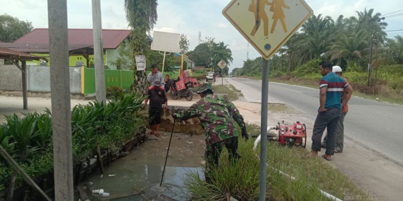 Tapung,-Sebagai bentuk tanggung jawab atas tugasnya sebagai aparat kewilayahan, Peltu Erizal Babinsa Koramil 16/Tapung Kodim 0313/Kampar bersama warga melaksanakan penyedotan air yang menggenangi Areal pekarangan SDN 036 di Dusun 3 jalan Garuda Sakti Km 11 Desa Karya Indah Kecamatan Tapung Kabupaten Kampar. Rabu (19/10/2022).