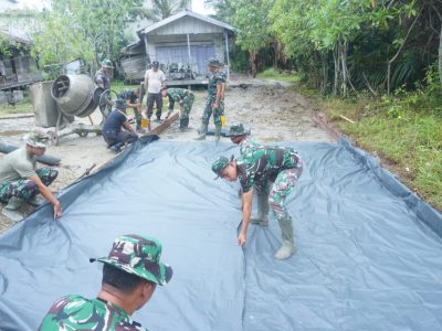 Berita Utama Satgas TMMD ke 115 Kodim 0313/KPR, Persiapan Semenisasi Dengan Memasang Papan Mal Teluk Meranti – Personil satgasTMMD Ke 115 Kodim 0313/KPR dan Warga memasang mal dan Plastik hitam untuk ...