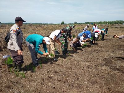 Berita Jajaran Babinsa Sertu Ilham Khairi, Bersama Polsek dan Kecamatan Laksanakan Penanaman Pohon Serentak.
