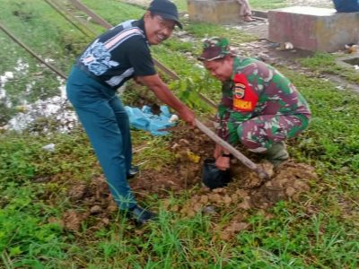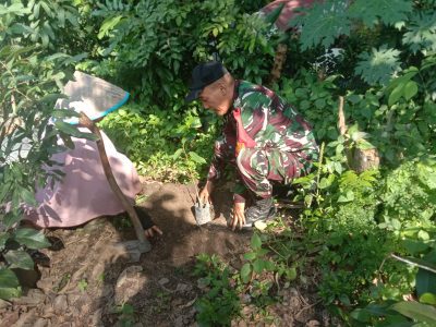 Upaya Memberikan Daya Serap Air ke Dalam Tanah, Babinsa Koramil 16/Tapung Bersama Warga Tanam Pohon Penghijuan