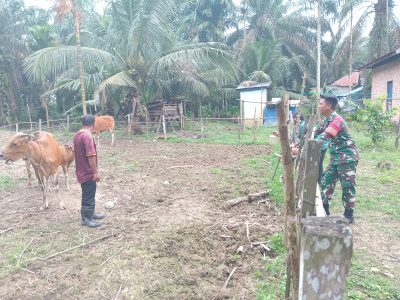 Berita Jajaran Yakinkan Hewan Ternak Warga Bebas PMK, Babinsa Koramil 06 Siak Hulu Komsos dengan Peternak Sapi 15 Desember 2025