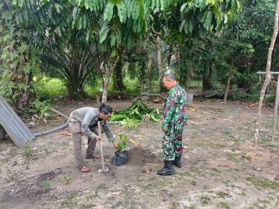 Upaya Memberikan Daya Serap Air ke Dalam Tanah, Babinsa Koramil 16/Tapung Bersama Warga Tanam Pohon Penghijuan