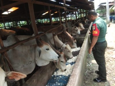Berita Jajaran Yakinkan Hewan Ternak Warga Bebas PMK, Babinsa Koramil 06 Siak Hulu Komsos dengan Peternak Sapi 15 Desember 2025