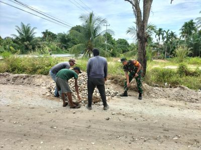 Berita Jajaran Serda Alexander, Babinsa Koramil 07/Kampar Gotong Royong Bersama Warga Timbun Jalan Yang Rusak Rumbio Jaya – Babinsa Koramil 07/Kampar Kodim 0313/Kpr Serda Alexander melaksanakan Gotong royong penimbunan jalan yang berlubang ...