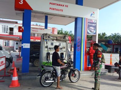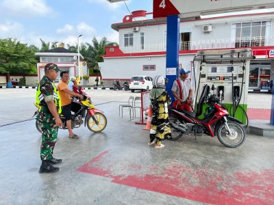 Sertu Muhammad Rahmad Babinsa Koramil 14/Kepenuhan Kodim 0313/Kpr, melaksanakan kegiatan monitoring dan pengamanan kepada masyarakat yang mengantri ...