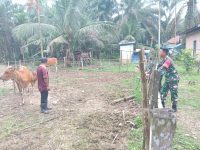 Babinsa Praka Dian Satria juga mengecek kondisi fisik hewan,kandang dan memastikan peternak menerapkan standar kebersihan dan pencegahan penularan penyakit.