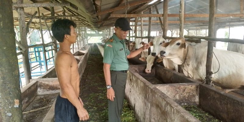 Babinsa mendatangi kandang sapi milik warga binaan, Bapak Hadi, yang memiliki beberapa ekor sapi potong.