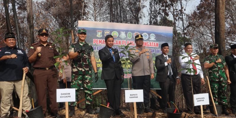 KAMPAR, RIAU – Sebagai wujud komitmen dalam menjaga kelestarian lingkungan dan mencegah kebakaran hutan dan lahan (karhutla), Dandim 0313/KPR Letkol CZI Satriady Prabowo, S.I.P, M.S.i, bersama Forum Komunikasi Pimpinan Daerah (Forkopimda) Kabupaten Kampar, menghadiri pemasangan plang larangan kegiatan di lahan bekas terbakar di Desa Merangin, Kecamatan Kuok, Kabupaten Kampar, pada Rabu, 01 Oktober 2025.