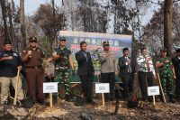 – Pemasangan plang peringatan larangan melakukan kegiatan apapun di lahan bekas terbakar secara bersama-sama dan permanen (di cor).