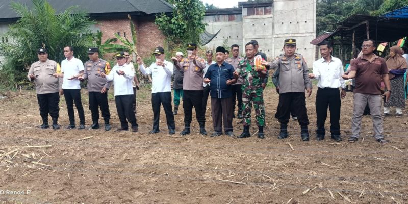 Bangkinag – Langkah yang baik untuk mewujudkan ketahanan pangan, Danramil 01/Bkn Kodim 0313/Kpr Mayor inf Marwan Prapat di Wakili Serda Gunawan melaksanakan penanaman jagung pipil bersama Kapolsek Bangkinang Kota dan warga bertempat di lahan milik masyarakat Desa Binuang Kecamatan Bangkinang Kabupaten Kampar. Rabu (10/09/2025).